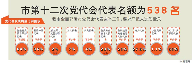 根据规定,市第十二次党代会代表必须是有选举权的正式党员,应是共产党员中的优秀分子,能够体现先进性、纯洁性和广泛性,基本资格条件包括思想政治素质好、履职意识和议事能力较强、品行端正作风优良、工作业绩突出等4项。
