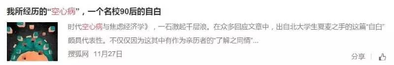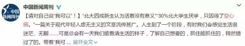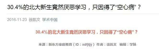 就在数天之前,这样一篇文章在在网上刷屏了:《30.4%的北大新生竟然厌恶学习,只因得了“空心病”?》。