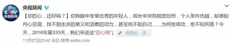 简言之,对群体现象的数据描述,不能代表每一个人的具体情况。作为一个从抑郁症与虚无主义里爬出来的90后女生,请允许我向你们坦白我的亲身体会。对我而言,情感教育比理性说教更有效,更有利于解决所谓“空心病”问题。