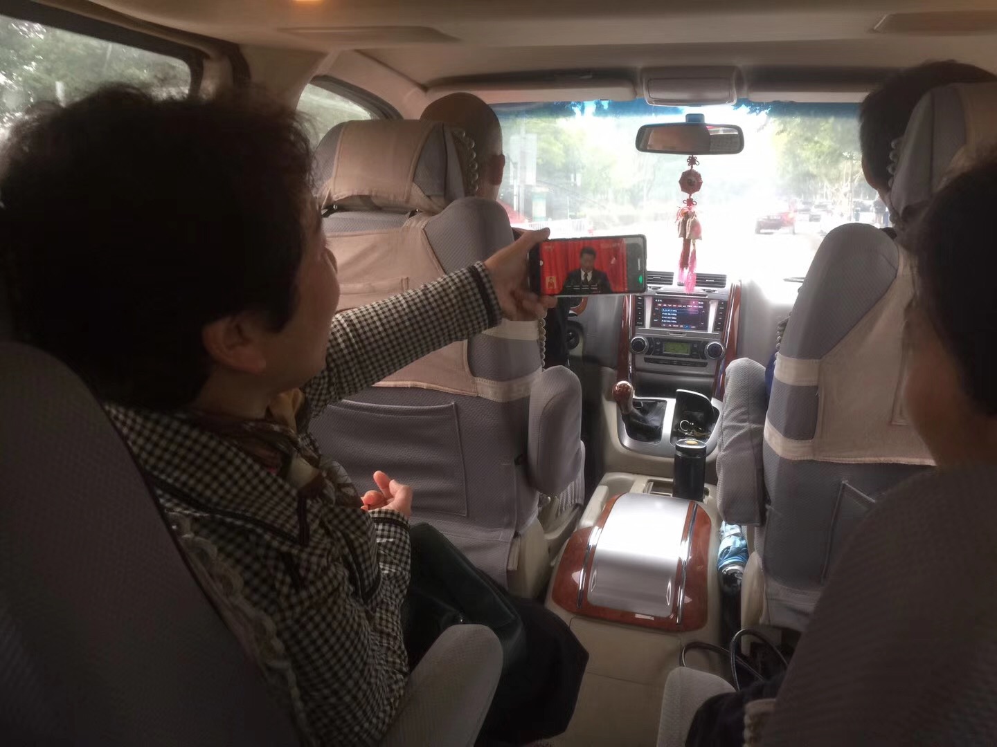 衢州妇保院医生在送医下乡的路上观看十九大开幕。