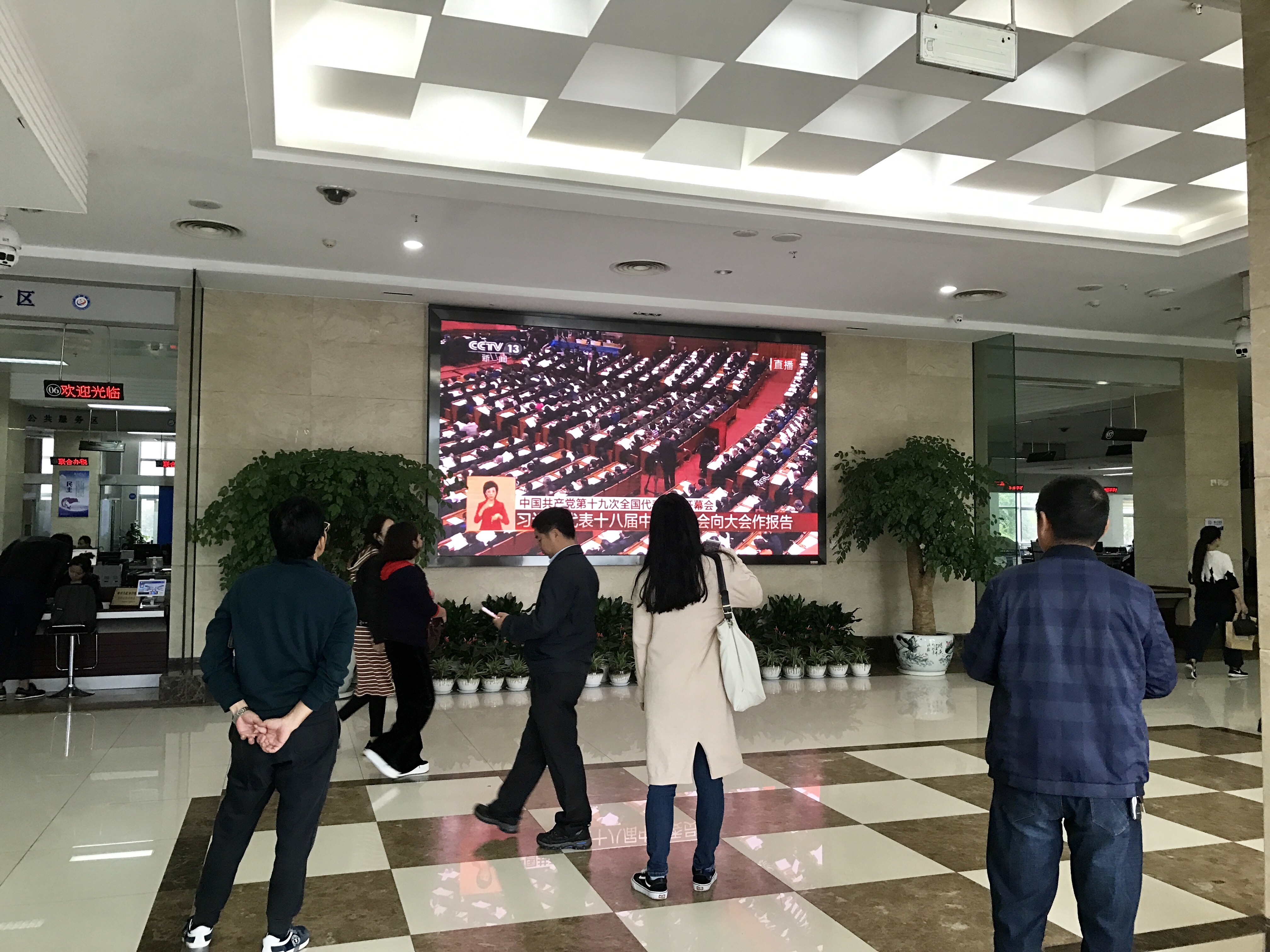 衢州市行政服务中心组织干部群众通过不同方式收看收听十九大开幕。