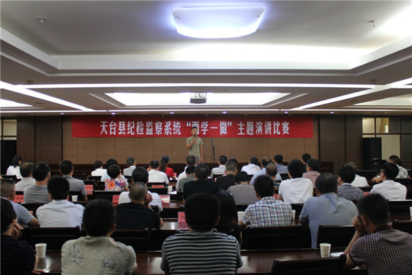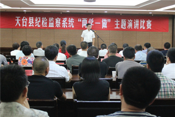 “两学一做”主题演讲比赛是天台县纪委抓政治思想工作、抓履行岗位职责、抓干部队伍建设的一个缩影,展现了纪检监察干部敢于争先、勇于进取、善作善成、好学乐悟的良好风貌,也展现了纪检监察干部深入推进党风廉政建设和反腐败工作的昂扬锐气和拼搏勇气,更展现了纪检监察团队忠诚、干净、担当的精神,释放了强大的正能量。(台州市纪委)