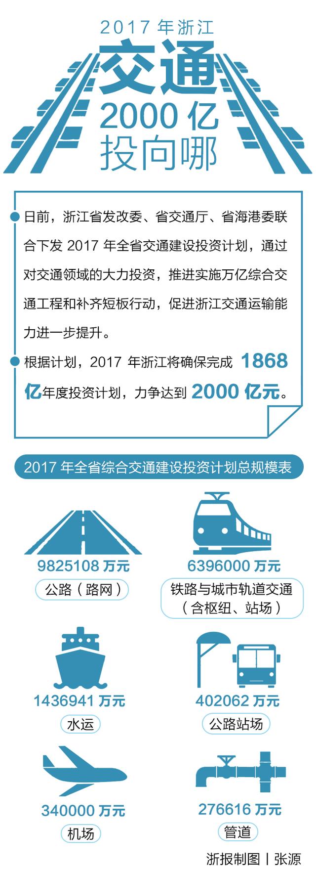 日前,浙江省发改委、省交通运输厅、省海港委联合下发2017年全省交通建设投资计划,通过对交通领域的大力投资,推进实施万亿综合交通工程和补齐短板行动,促进浙江交通运输能力进一步提升。根据计划,2017年浙江将确保完成1868亿年度投资计划,力争达到2000亿元。