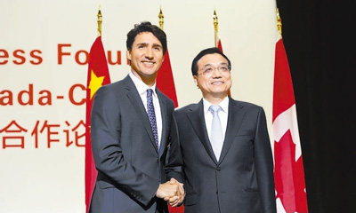 李克强与特鲁多总理共同出席第六届中加经贸合作论坛并致辞