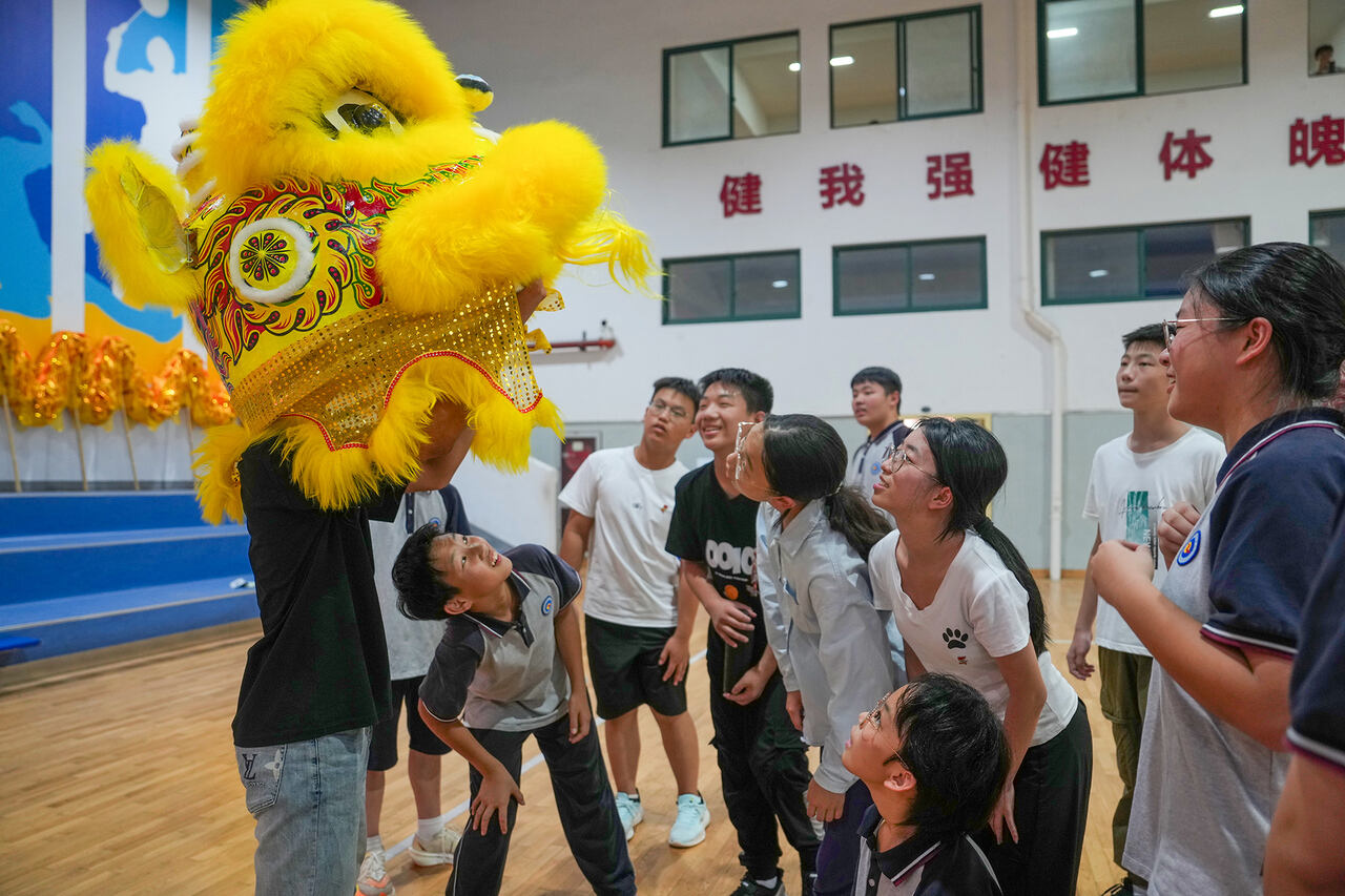 “停!龙头再抬高一点,对了,就是这样!”龙尾山村舞龙传承人邵文龙抹了把汗,继续示范。秋瑾中学的学生们好奇地观察舞龙舞狮道具,认真模仿每一个动作。这是我们为秋瑾中学准备的新学期第1场示范教学,每个人都憋着一股劲。